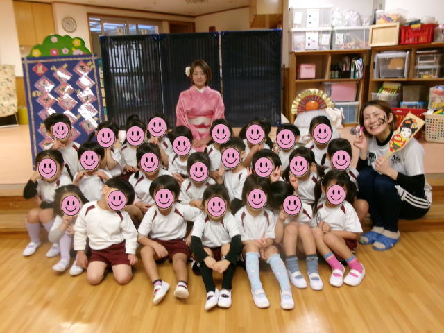 1月お楽しみ会 先生が「着物」を着てみせてくれたよ! 3歳児 |