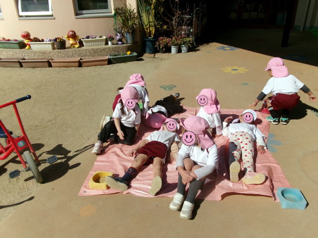 お外が暖かくて ひなたぼっこをしたよ☆ 3歳児