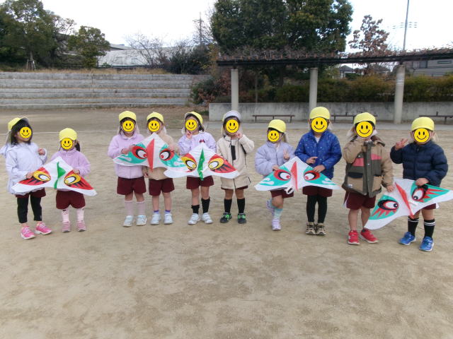 | お正月あそび みんなで凧あげをしたよ☆ 4歳児 |
