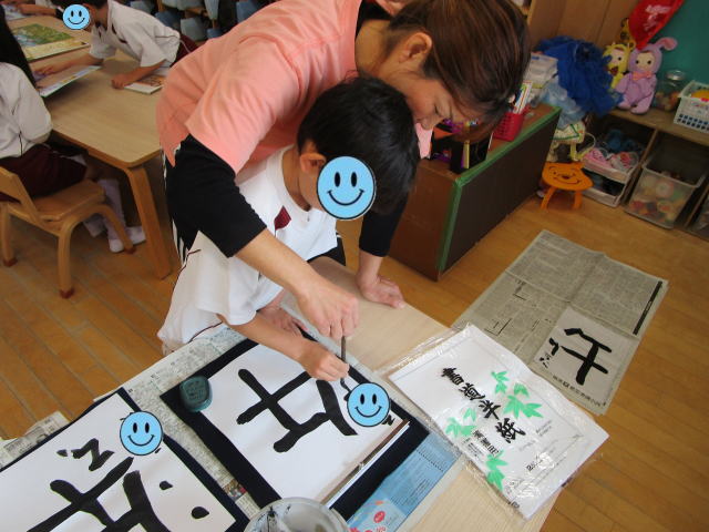 先生と習字に挑戦! 今年の干支「うま(午)」 5歳児 |