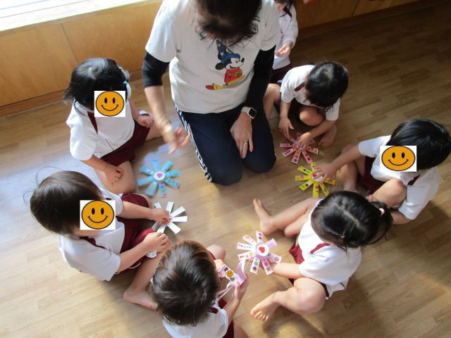 | 製作でコマ作ったよ 上手にまわせるかな? 2歳児 |